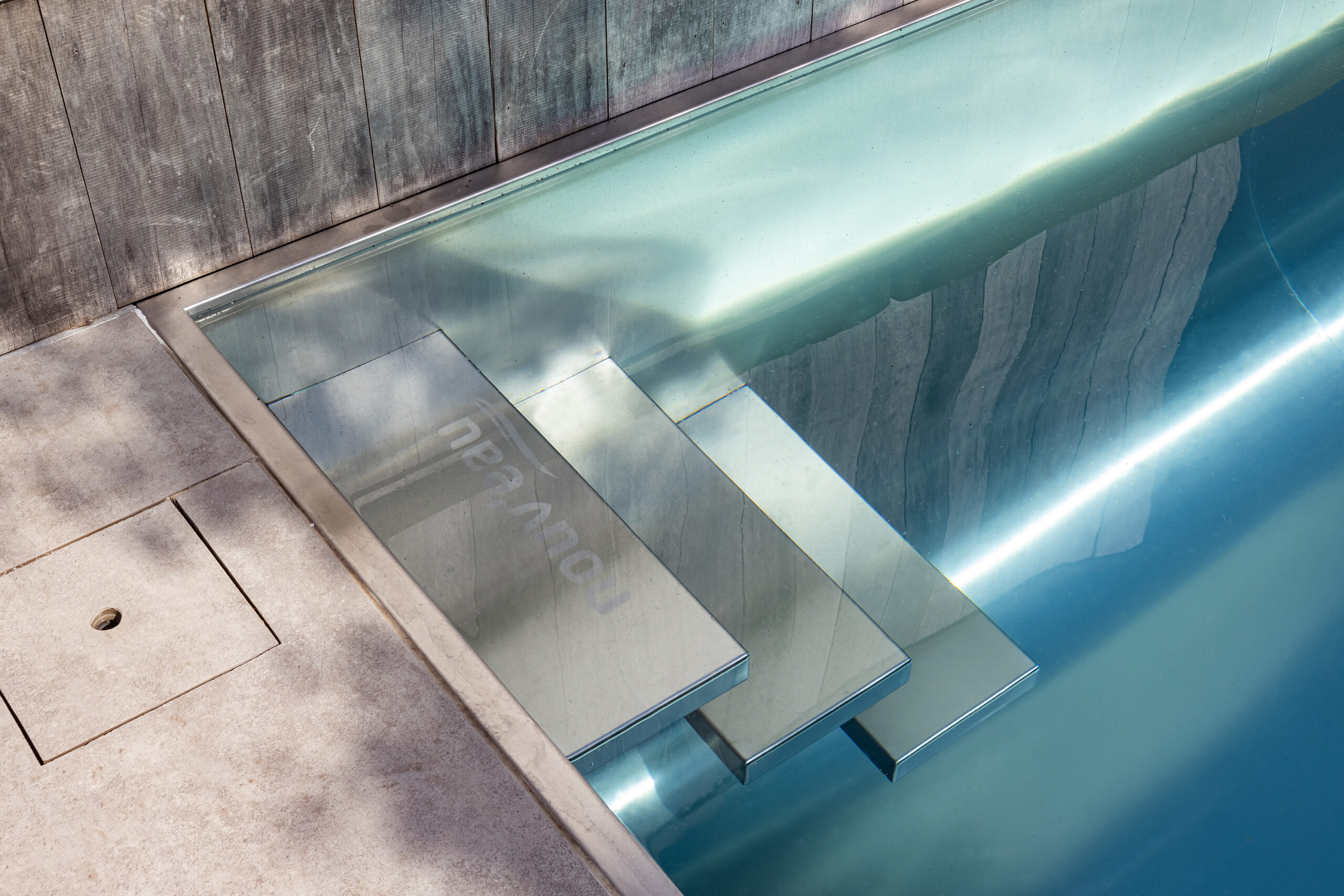 A comfortable relaxation area just below the water level. The niche of the roller shutter is  positioned underneath this plage.